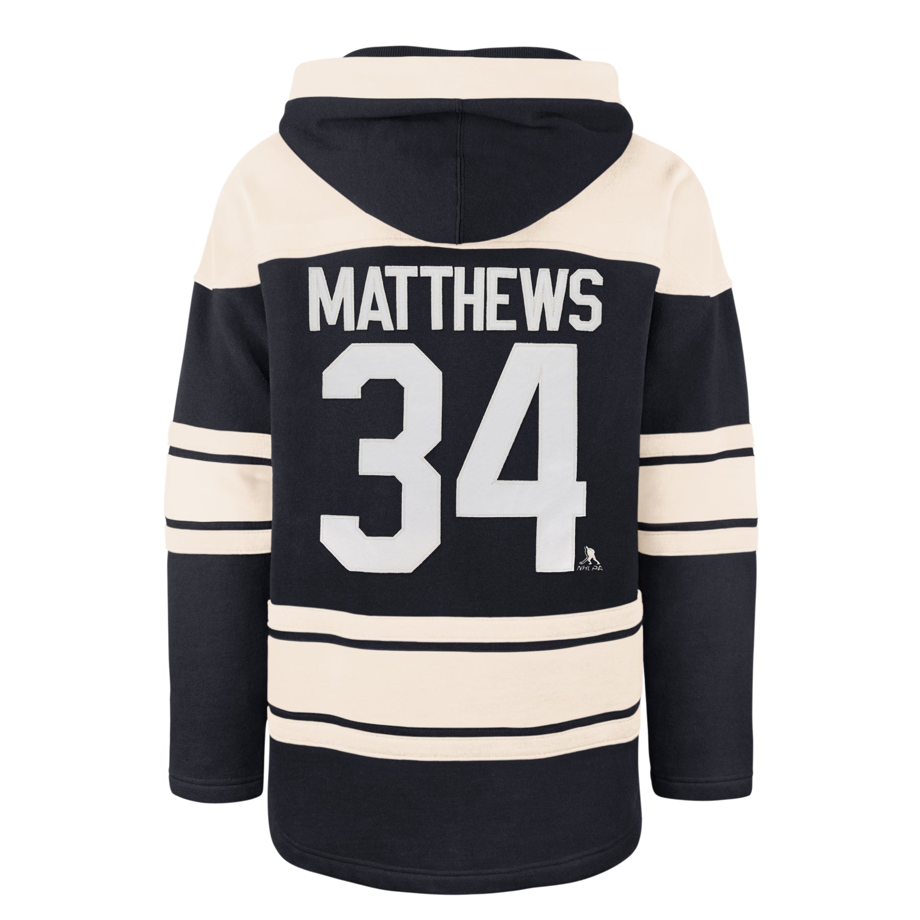 The '47 Lacer Hoodie is a hockey-inspired silhouette made from midweight fleece with a thermalined hood and twill appliques on the body, shoulders, and sleeves.