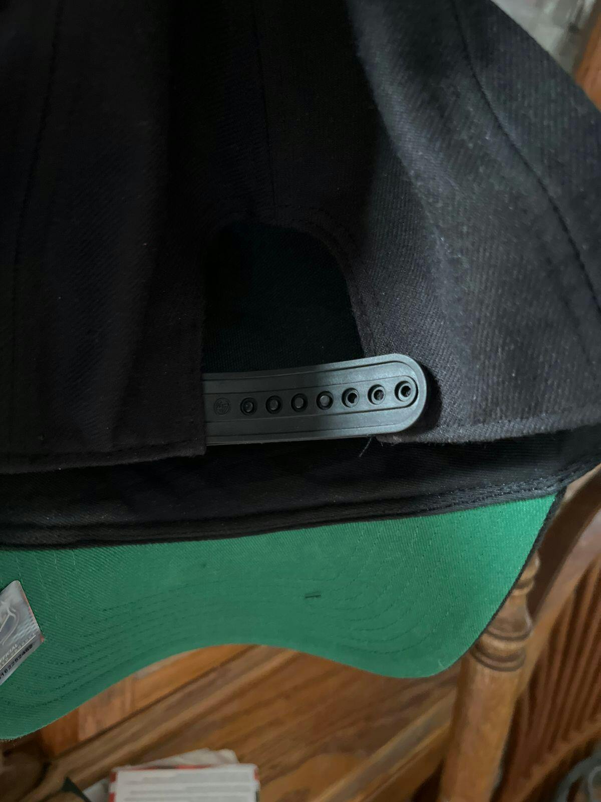 This hat has an adjusting plastic strap unfortunately, I have a small head and the strap is all the way across two holes being used not fussy on this kind of app
